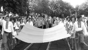 Під час підняття Прапора на урочистостях, каже, Л.І. Недомовна її переповнюють почуття гордості та віри у славне майбутнє нашої країни.