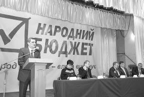 Про відповідальність влади перед людьми, механізм реалізації даного проекту говорили на зібранні голова обласної ради Микола Пундик, керівник ініціативи «Народний бюджет» Іван Фурсін, депутат обласної ради, керівник фракції Партії регіонів Віктор Волков, Герой України, директорка агрофірми «Маяк» Березівського району Зінаїда Гришко.