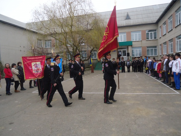 А за кілька днів на оформленому козацькою символікою подвір’ї Маринівської школи була зібрана святкова лінійка, на якій усім козачатам урочисто вручили відповідні посвідчення та знаки. Були присутні почесні представники округу на чолі з головним отаманом, генералом В. Солодких, козаки полку, родичі учнів.