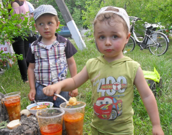Смакував борщ усім присутнім, надто – дітям. До того ж куховарочки склали ще й одну велику канапку, також традиційну українську – з салом. А знана господиня із села Байбузівки Фаїна Нігрей поділилася своїми секретами приготування нашої національної страви. Головне, потрібно готувати борщ з душею, а споживати – з молитвою. На це звернув увагу протоієрей Владислав – настоятель місцевого храму в честь Іоанна Богослова, і перед вживанням освятив страву.