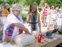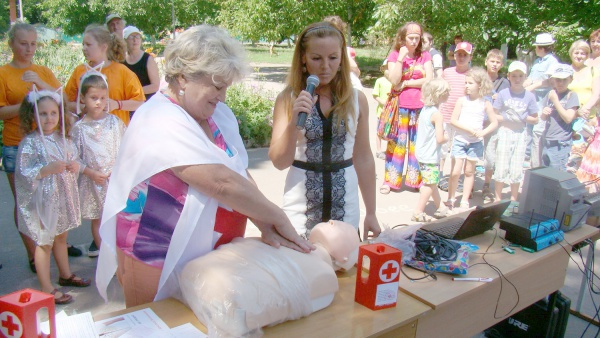 Вихованець громадської організації юних рятувальників «Школи безпеки» Роман Годованець показав дітям, як провадиться порятунок потерпілого з вікна 3-го поверху будинку. А керівниця Київського районного відділення Одеської обласної організації Товариства Червоного Хреста Т. Волошина і патронажні сестри милосердя – А. Щекудова та Н. Кротенко на макетах-муляжах продемонстрували дітям, як правильно надати першу медичну допомогу при нещасних випадках.