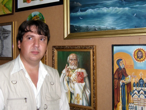 При розписи ікон він прискіпливо дотримується технології виготовлення дерев’яної основи та нанесення фарб. А в сюжетні лінії вносить власні емоції.