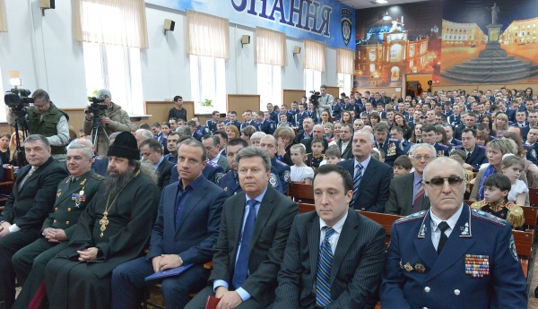 В урочистих обставинах їм було вручено дипломи. Почесні гості вітали молоде поповнення лав правоохоронців. Заступник голови – керівник апарату облдержадміністрації Віталій Волошин вітав випускників від імені обласної виконавчої влади і побажав їм мирної служби:
