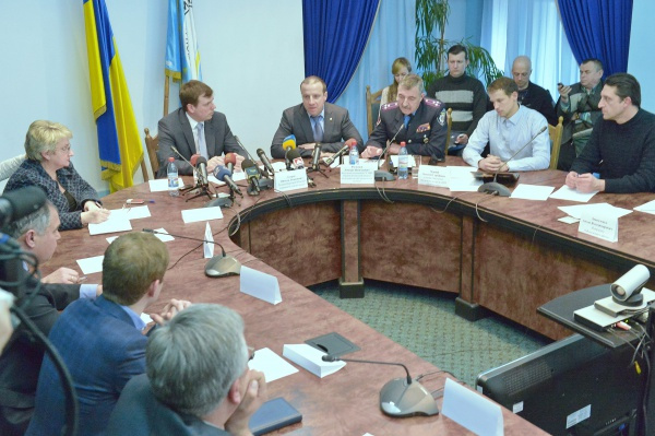 Як підкреслив, відкриваючи зустріч, Микола Скорик, мета зборів за круглим столом – пошук шляхів підтримання громадського порядку в регіоні та недопущення всіляких провокацій. Він запропонував на розгляд проект спільного звернення керівників регіональних організацій політичних партій і представників громадських організацій до жителів регіону, незалежно від їхніх політичних поглядів і ідеологічних переконань, із проханням і надалі проявляти властиву їм мудрість, стриманість і толерантність.