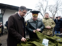Генерал-полковник Полторак разом із паном Ващуком особисто перевірили якість отриманого взуття й обмундирування та відповіли на деякі запитання представників центральних і регіональних ЗМІ.