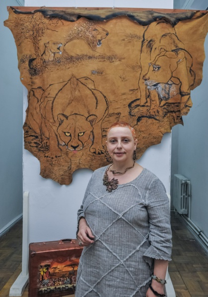 – Експозиція відображає настрій, який панує останнім часом у нашій країні, – говорить Тетяна. – Зазвичай я пишу картини на шкірах і на дереві, але цю колекцію вирішила створити на валізах. У мене є кілька магазинів «хенд-мейд», тому я вмію повертати до життя різні старі речі, серед яких – гасові лампи, бідони, сумки та валізи.