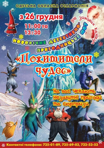 Вистава за участю одеських артистів і вихованців міського хореографічного центру була виконана у традиціях мюзиклу. Заздрі сили, що вкрали кулю новорічних чудес, без якої чарівництво неможливе, зазнали поразки, а добро (а також кмітливість і дружба), як завжди, перемогли.