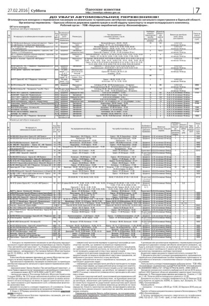 Оголошуються конкурси з перевезення пасажирів на міжміських та приміських автобусних маршрутах загального користування в Одеській області.