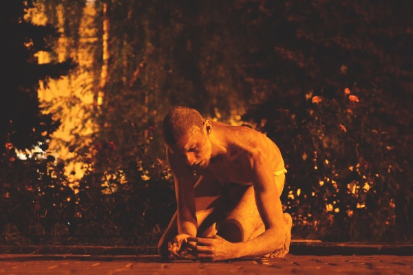 Актер Дмитрий Дацков исполнил своеобразный танец, освобождаясь от одежды из пластика и бытовых отходов, в которую был облачен.