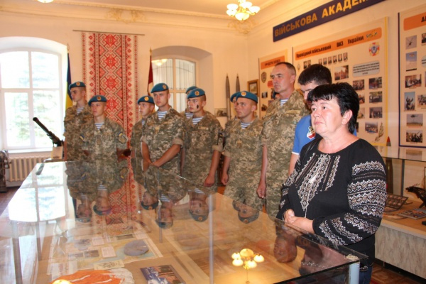 Колектив академії низько вклоняється всім матерям за героїзм їхніх синів, які поклали свої життя заради захисту рідної країни, наголосив у своєму зверненні до учасників зустрічі начальник військового вишу генерал-майор Олег Гуляк. Він подякував Наталії Петрівні за те, що вона виховала свого сина справжнім патріотом України.