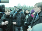 Близько двох десятків чоловік прийшли під стіни адміністративного будинку з вимогою розслідувати випадок нападу невідомих на автобуси, які перевозили одеських опозиціонерів до Києва.