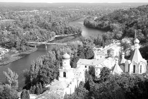 Річка Сіверський Донець тече крізь поля і лісові гаї. На правому скелястому березі у воістину мальовничому місці розкинувся національний природний парк «Святі гори». Над густим лісом піднеслися намети й куполи церков – це Свято-Успенська Святогорська лавра.