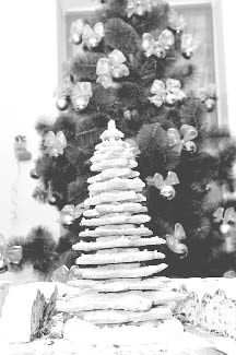 Головною гордістю Хайнца Бая став великий Різдвяний «Криштолен» – дуже смачний кекс із волоськими горіхами, родзинками, цукатами, мигдалем, щедро присипаний цукровою пудрою. Це традиційні німецькі ласощі. Вони символізують дитину-Ісуса, загорнену в білосніжне покривало. А Людмила Бонар представила пиріг «Різдвяна зірка» – теж символ народження Христа.