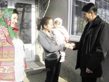 Разом із сільським головою ми побували у великому добротному будинку батьків Наталі. Тут вони живуть, доки ремонтують свій будинок. Олександр був у від’їзді: працює водієм. Наталя в декретній відпустці: їхній маленькій доньці трохи більше року. Поговорили. Розмова вийшла цікавою.
