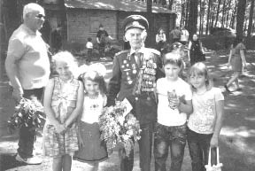 Ми розглядали фотографії, принесені Сергієм Кириловичем, які він зберігає багато років. На звороті однієї з них написано: «Прийом до членів ВЛКСМ Беляєва. Травень 1945 р. Угорщина. Я – ліворуч другий». А друга фотографія, що публікується, зроблена через 65 років, у День Перемоги, у м. Одесі. Сергій Кирилович сфотографувався з Марійкою, Даринкою, Васьком і Христинкою, за щастя яких пішов воювати у свої дев'ятнадцять юнацьких років. І найвища нагорода для нього, фронтовика, – їхня щира дитяча довірливість і бузок, подарований ними. Зворушило колишнього солдата і те, що сфотографуватися з дітлахами на спомин його попросили їхні батьки, до цього незнайомі йому люди.