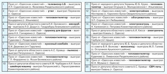 Редакція висловлює подяку всім читачам, які взяли участь в акції, і меценатам – депутатам різних рівнів, які надали призи.