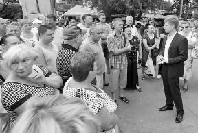 Своєю чергою Олексій Гончаренко (на знімку – праворуч), до якого інвестори звернулися по допомогу два тижні тому, пообіцяв, що обласна рада далі контролюватиме роботу забудовника.