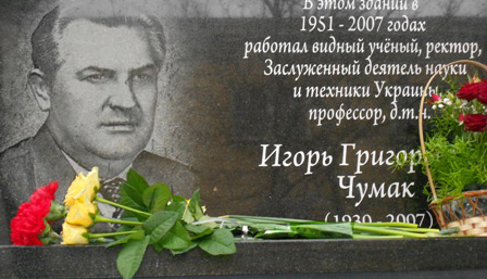 Біля входу до будинку Одеської державної академії холоду урочисто відкрито меморіальну дошку, присвячену пам'яті колишнього ректора вузу, доктора технічних наук, професора, заслуженого діяча науки і техніки України, академіка, президента української філії Міжнародної академії холоду Ігоря Григоровича Чумака.