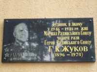 Запитуємо в перехожих, чи знають вони, що в цьому будинку жив Георгій Жуков. Відповіді – «Ні», або вигуки: «Ах, так, ось і меморіальна табличка!» Сам будинок – нічим не примітний особняк кінця XIX століття. Історія навіть не зберегла прізвища його архітектора для нащадків.
