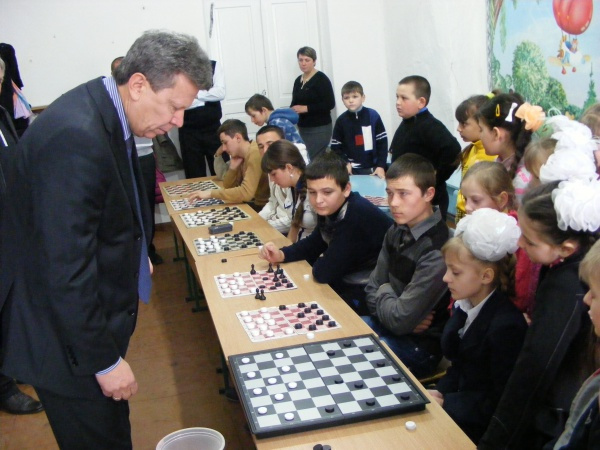 Заступник голови облради П. Хлицов завітав до дітей не з порожніми руками. Знаючи про пристрасть школярів Майорського до шашок, він привіз новий набір для гри та провів одночасну партію із сімома найдосвідченішими учнями. Євген Кожокар, Роман Драгой, Ігор Булгар, Діана Бойчук, Павло Коренчук, Юрій Грабаровський та наймолодша учасниця Оленка Мартинча дуже старалися, щоб не допустити непродуманих кроків у грі з депутатом. Та все ж таки виграти у шанованого гостя вдалося лише Роману Драгою. Решта партій закінчилися внічию або з перевагою Петра Володимировича.