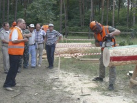 Далі вальники демонстрували свою майстерність у п’яти видах змагань: звалювання дерева, обрізання сучків, заміна ланцюга, розкряжування стовбура комбінованим різом та точне розкряжування.