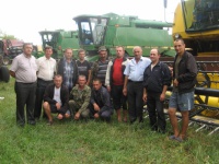 Один зі знімків я зробила на ґрунтозахисному 80-гектарному полі. Того дня закінчували збирання пшениці, але пройшов дощ, і механізатори з нетерпінням чекали, коли ж з’явиться сонце. Так би мовити, вимушений перекур, хоча, до речі, в руках сигарету не побачила ні в кого. Як зазначив головний агроном Юрій Михайленко, у них із цим строго. Георгій Іванович відрекомендував кожного з комбайнерів на цьому полі, водіїв, пожежника, назвавши їх на ім’я. Хлопці, схоже, дещо бентежилися, ховаючись за жартами. Так я їх і запам’ятала на тлі новеньких комбайнів разом із Георгієм Івановичем, який скромно примостився на правому фланзі, Іваном Георгійовичем Кюссе і Юрієм Юрійовичем Михайленком (вони на знімку – крайні ліворуч). Такий от житейський знімок вийшов...