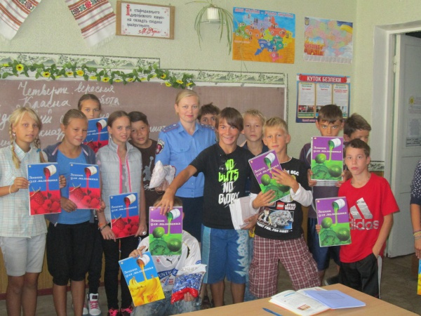Співробітниця служби у справах дітей міськвідділу міліції Олеся Сухарська передала дітям-сиротам шкільне приладдя та солодощі, придбані для них місцевими підприємцями.