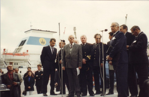 Одним з ініціаторів виставки-симпозіуму був директор інноваційного центру «Морські технології», головний редактор журналу «Судноплавство» Віктор Григорович Денисов. Його ідею підтримали Родерик Кей з англійської фірми «Долфін Екзебішн» і тодішній начальник Одеського морського торговельного порту Микола Пантелеймонович Павлюк.