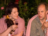Але взагалі зараз я більше запала на театр. У моєму арсеналі уже є Проня Прокопівна – «За двома зайцями», є «Декамерон» за участю Ольги Сумської, Олександра Любченка, Юлії Захарової. У цій виставі чудово поєднуються тонкий гумор і життєві реалії пізньосередньовічної Італії. Ми вже показали цю постановку і в Одесі.