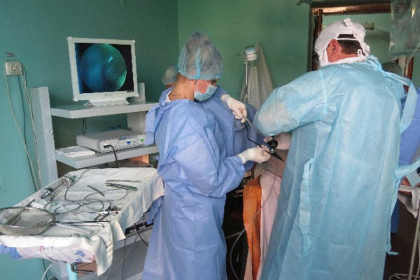 – Протягом двох останніх років практично всі операції на простаті в нашій лікарні виконуються ендоскопічним шляхом, за винятком особливо занедбаних випадків, у яких використовується відкрита операція, – таких за ці роки було лише три-чотири, – розповідає В. Танасійчук. – Тут іще відіграє роль вчасне звертання хворого до фахівця. Аналогічним (ендоскопічним) способом проводяться операції на уретрі (сечівник) і сечовому міхурі.
