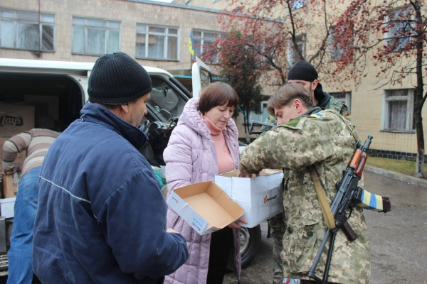 – Рано вранці я зустрів мікроавтобус із Біляївського району Одещини, в якому було понад тонна вантажу, і ми рушили на вулицю Красномаяцьку, де в гуртожитку компактно мешкають понад 150 біженців із дітьми з усієї Донецької області. Олександра хотіла особисто вручити вантаж, щоб знати, що допомога прийшла за адресою, – розповідає М. Токарський. – Гуртожиток щойно прокидався, коли ми приїхали туди. Біженців до глибини душі зворушило те, що допомогу їм подали саме діти, у деяких на очі навернулися сльози. Під час розвантаження автомобіля вони з цікавістю читали написи на коробках. І дуже тепло дякували Олександрі за овочі, фрукти, консерви, ласощі, за одяг, іграшки… Усього й не перелічиш. А ще просили, по можливості, привезти їм посуд, мийні засоби й теплий одяг. Олександра пообіцяла ще раз приїхати й доставити все необхідне.