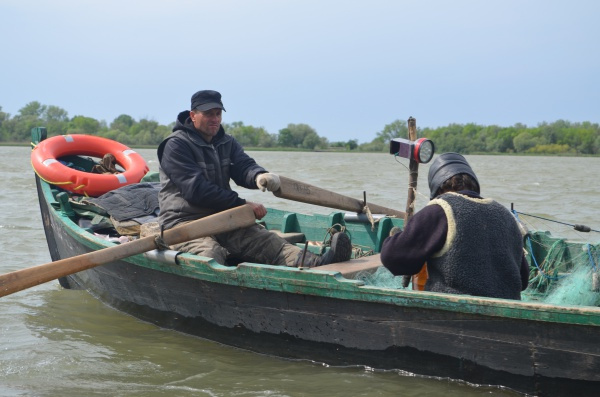 Разом з Ігорем на катері з Вилкового спускаємося по Дунаю. То там, то тут на воді бачимо рибальські човни. Їх будують тільки у Вилковому. Не одне покоління рибалок переконалося в тому, що такі форми й обводи найліпше пристосовані для Дунаю та прибережної частини Чорного моря. Круглогруді човни з високими бортами й округлим днищем віддано служать промисловикам.