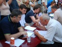 Слід зазначити, що це вже третій візит Міхеіла Ніколозовича до Комінтернівського району. Під час зустрічі він ознайомив жителів з результатами проведення конкурсу на посаду голови райдержадміністрації і відрекомендував одного з кандидатів – Дмитра Наталуху.