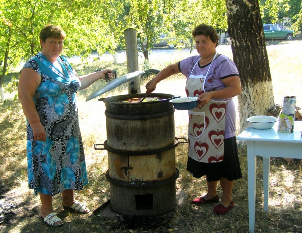 А тим часом під густим гіллям дерев кухарки Любов Чорна та Таїна Чорнопищук доварювали борщ, якого вже всі з нетерпінням чекали. Страву благословив настоятель місцевого храму Івана Богослова отець Владислав. Шкода, що словами не розкажеш про ні з чим не зрівнянний смак наваристого, густого борщу…