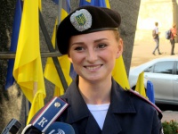 Першокурсниця Одеського державного університету внутрішніх справ Наталя Матвієнко дуже хвилюється. Вона складає присягу українського поліцейського.