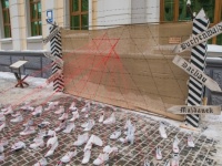 – Інсталяція покликана нагадати про трагедію Голокосту, проілюструвавши ті страшні події, – говорить він. – Ми бачимо частину огорожі концтабору та шість табличок із назвами найбільших концтаборів. Є в даній роботі й Зірка Давида. А залишене взуття нагадує про тих, кого вже немає…