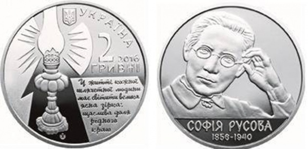 Національний банк України ввів в обіг пам’ятну монету «Софія Русова» номіналом 2 гривні, присвячену 160-річчю від дня народження видатного українського педагога в галузі дошкільного виховання, громадсько-освітнього діяча, письменниці, історика, етнографа, мистецтвознавця, літературного критика, однієї з організаторів жіночого руху, яка присвятила своє життя створенню національної системи виховання й освіти, – Софії Федорівні Русовій (уродженій Ліндфорс).