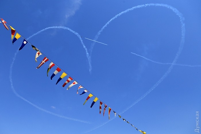 В завершении пилоты под управлением Сергея Филатова на L-29 нарисовали в небе сердце со стрелой в знак благодарности одесситам за овации.