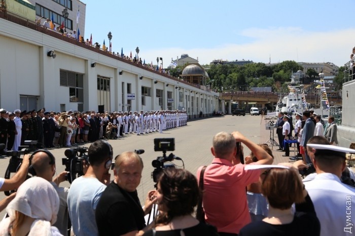 Глава государства также выдал сертификаты на два бронекатера «Гюрза-М», присвоив им имена «Бердянск» и «Аккерман», и вручил награды военным морякам.