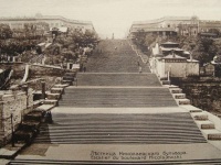 К середине 30-х годов позапрошлого века в городе уже был оперный театр, а на Приморском бульваре красовались особняки местной элиты. На правом его краю помещалась дворцовая усадьба генерал-губернатора графа М.С. Воронцова, на левом – биржа. Между ними – особняки графа Потоцкого, графа Нарышкина, чиновников Марини, Зонтага, Маюрова, крупных негоциантов Родоканаки, Верани, Фуко. Позже некоторые из этих зданий перешли во владение Строганова, Маразли, Ралли, Ефруси, Вассаля. В середине бульвара образовалась небольшая площадь, ограниченная двумя полукруглыми домами, с установленным в ее центре памятником первому одесскому градоначальнику герцогу де Ришелье. В правом из этих зданий располагались присутственные места (городская дума, управа), а в левом – гостиница «Санкт-Петербургская». Разумеется, предполагался спуск к морю. И уже на карте Одессы 1830 года отмечена лестница.