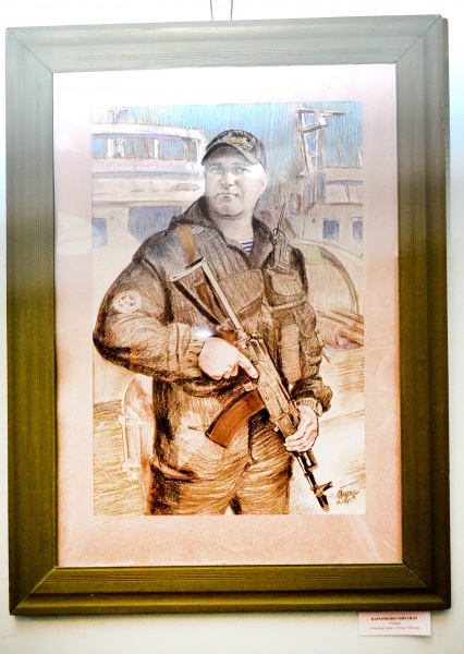 Есть тут и картины, отдающие дань времени. Серия портретов украинских пограничников, павших в зоне АТО, напоминает, что мирные дни еще не наступили.
