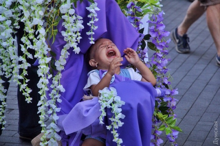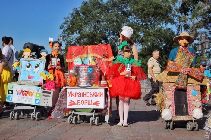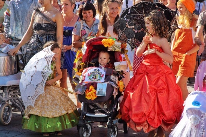 Как убедился наш корреспондент, из года в год число и изобретательность участников яркого мероприятия растет. Чего стоит только коляска, символизирующая кастрюлю борща! Или карета годовалого градоначальника со свитой. Именно такие участники были в этом году.