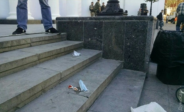 «Это Тарас - ветеран АТО, настоящий патриот и одессит, получил ранение на фронте.Голову ему разбил гражданин России Томаз… Думская площадь освобождается от мусора для проведения Дня города», — написал он.