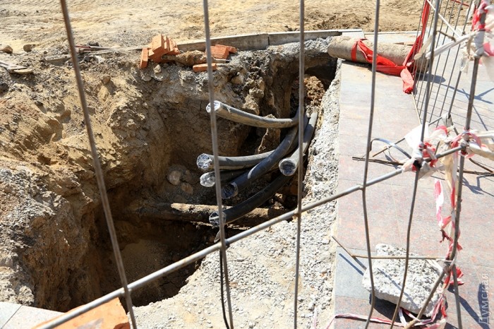 Реконструкция площади началась 17 августа, но, по словам строителей, они не знали, что столкнутся с таким количеством трудностей. Оказывается, инженеры компании до сих пор не знают, как провести коммуникации под трамвайными путями.