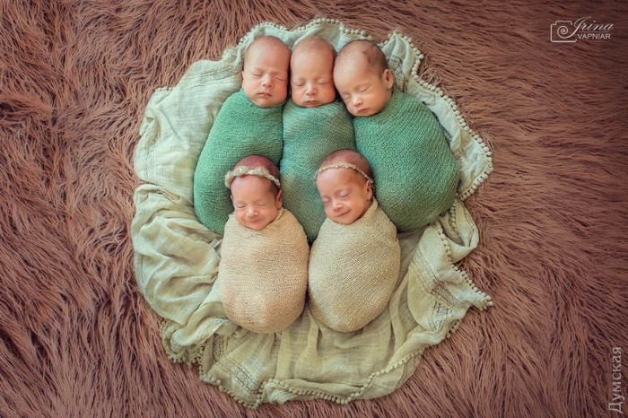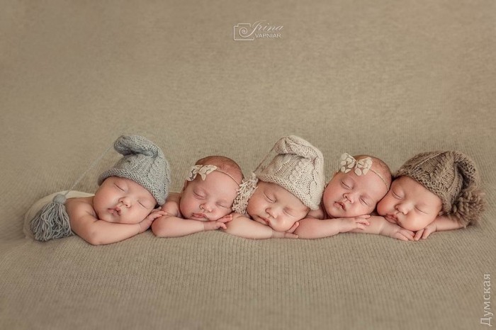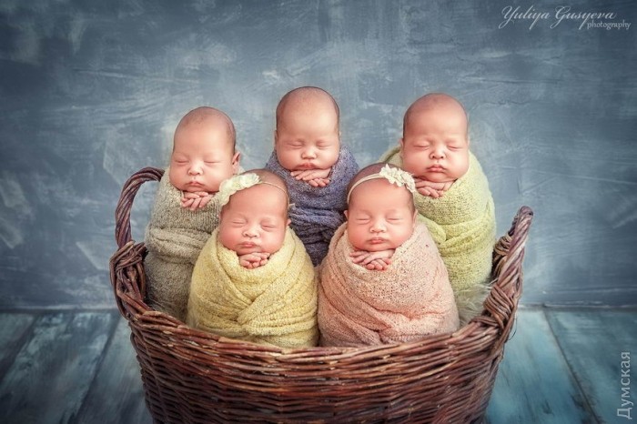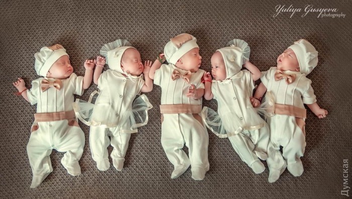 Уникальные одесские пятерняшки — Саша, Даша, Давид, Влад и Денис, появившиеся на свет 24 июня, почти сразу после выписки из больницы приняли участие в фотосессии для детей.