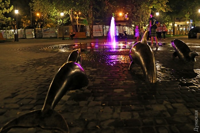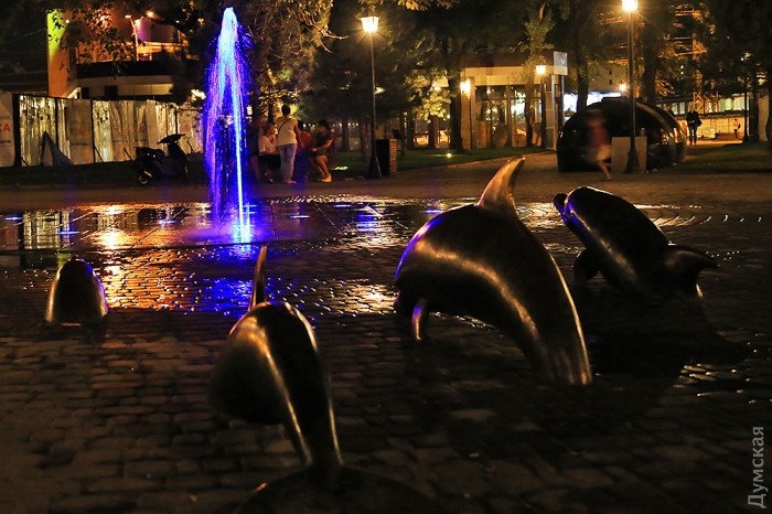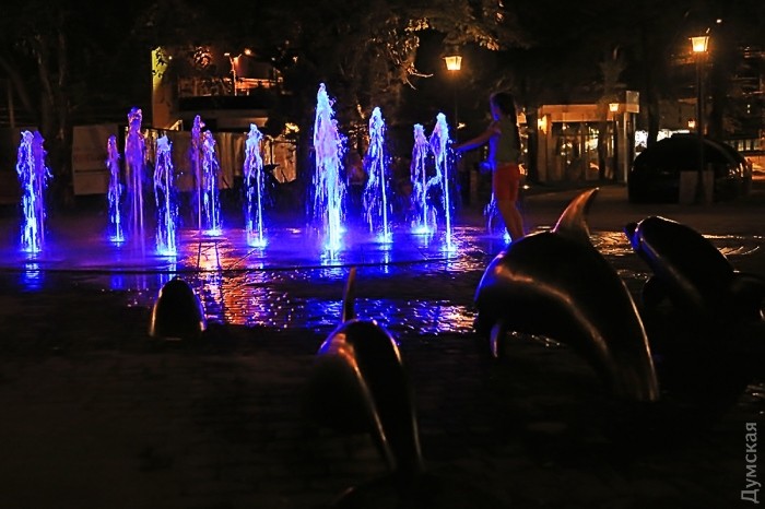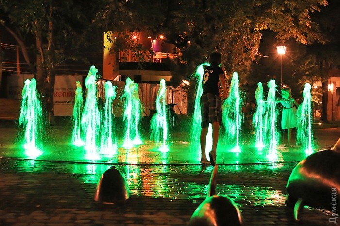 В эти последние теплые вечера вокруг него собираются на скамеечках мамочки, а в брызгах разноцветных струй плещется ребятня.