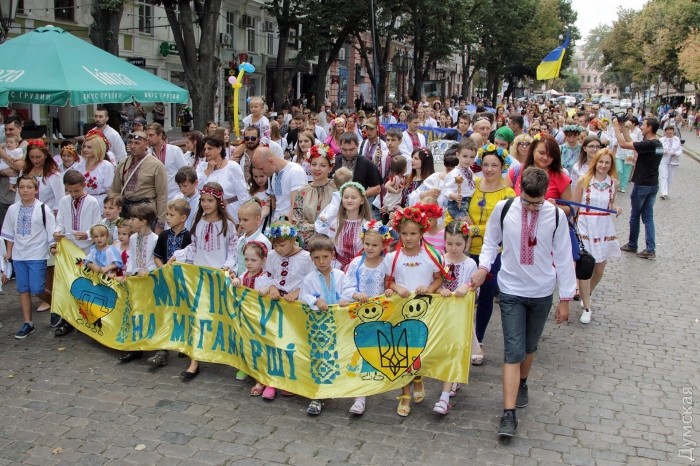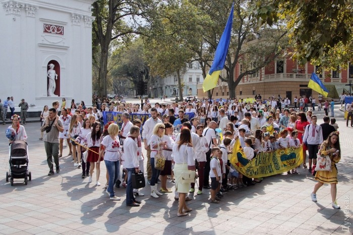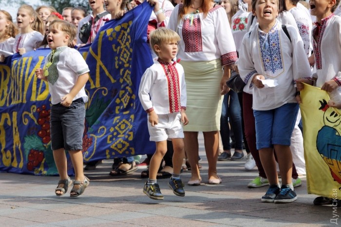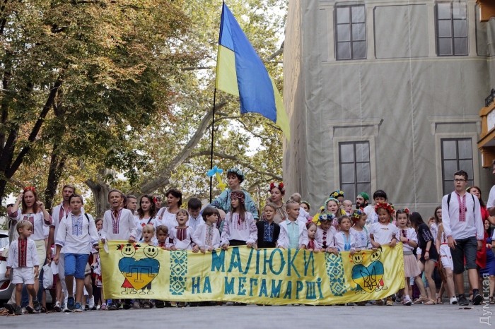 Как передает корреспондент «Думской», в мероприятии приняло участие более 150 одесситов всех возрастов, а сам марш был посвящен детям. Именно самые маленькие украинцы в национальных рубахах и стали во главе колонны.