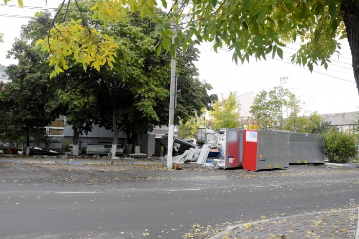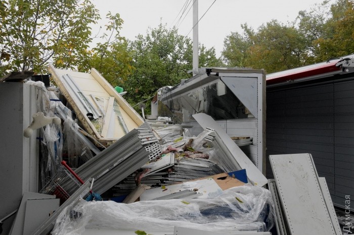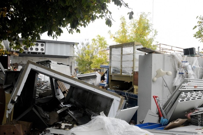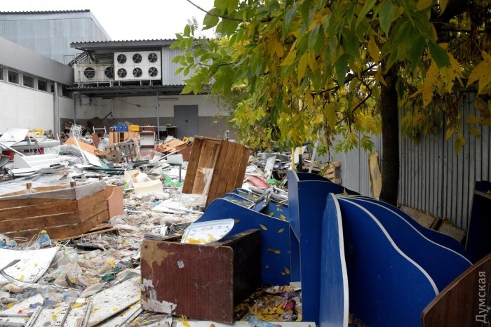 В результате рейдерских разборок, которые начались еще в сентябре, территория возле магазина сейчас больше напоминает сцену из фильма про наступивший конец света.