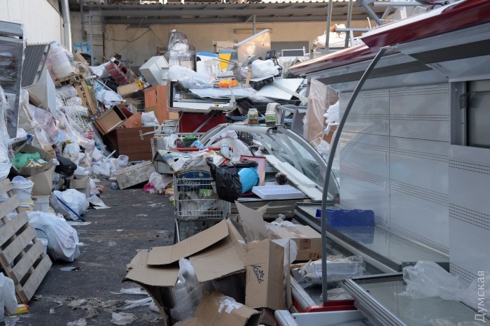 Как сообщает корреспондент «Думской» в Южном, товары выбросили наружу люди, которые теперь заняли территорию магазина. А сами работники «Виртуса» не собираются прибираться.