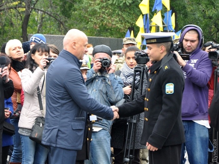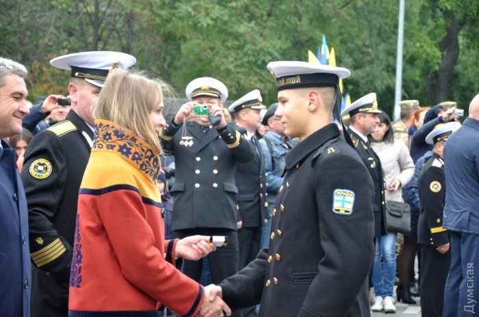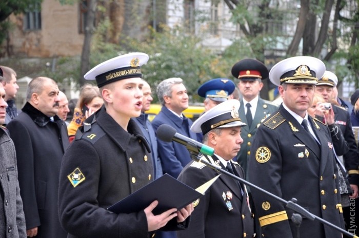 Быть верными Родине поклялись 74 лицеиста 1 курса (10 класс). После клятвы, которую зачитал лицеист Кирилл Торубара, будущие военные моряки исполнили государственный гимн Украины.